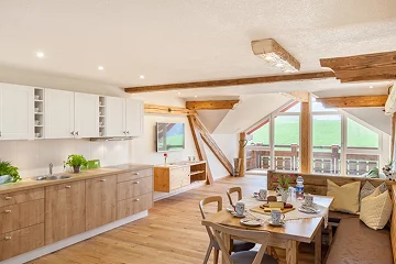Unsere Ferienwohnungen bieten den idealen Rückzugsort für Familien, die Wert auf Gemütlichkeit, Natur und Unabhängigkeit legen. Mit viel Platz, separaten Schlafzimmern, voll ausgestatteter Küche und herrlichem Blick auf die Allgäuer Berge beginnt der Familienurlaub auf dem Bauernhof im Allgäu ganz entspannt – und lässt sich jeden Tag neu gestalten.